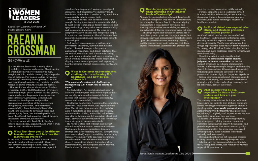 That reality has shaped the career of RaeAnn Grossman, CEO of HLTHWorks LLC. Over more than twenty-eight years, RaeAnn has led growth, turnarounds, and large-scale transformation across Medicare Advantage, Medicaid, and Commercial health plans and provider organizations, operating at the intersection of regulation, innovation, and operational accountability. From building billion-dollar healthcare platforms to advising boards and private equity firms, her leadership reflects a deeply held belief that impact is earned through disciplined execution, not rhetoric.